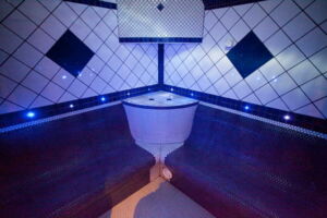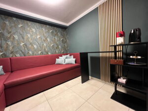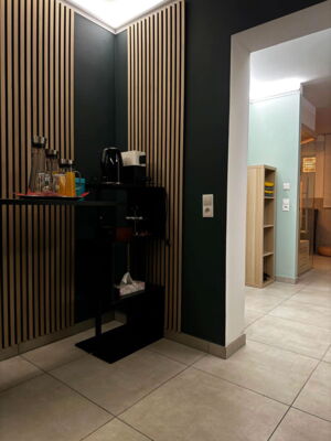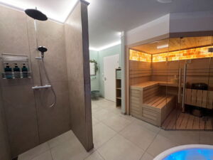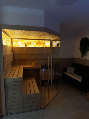 Für kürzere, intensive Auszeiten empfehlen wir unsere exklusive Private Spa Suite. Dieser kleinere, aber luxuriöse Bereich bietet Platz für 2-4 Personen und ist ideal für einen entspannten Kurzaufenthalt. Genießen Sie die wohltuende Bernsteinsauna, den Whirlpool mit Massagedüsen und stimmungsvoller Beleuchtung, erfrischen Sie sich unter der Regendusche und lassen Sie sich in der gemütlichen Ruhezone mit elektrischem Kamin und privater Bar verwöhnen. Kostenlose Getränke wie stilles Wasser, Kaffee und Tee stehen für Sie bereit.